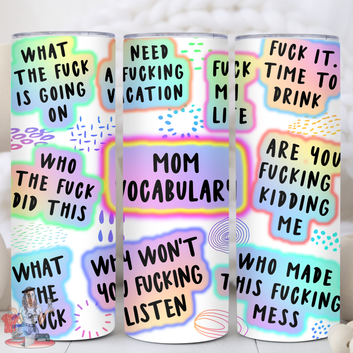 Can't express yourself without letting a few cuss words fly? Then this 20oz Tumbler is for you! Made to keep both hot and cold drinks at the temperature you want, this cuss-word and gloss-coated tumbler is the perfect accessory for mommies who don't mince their words. #MOMLIFE!